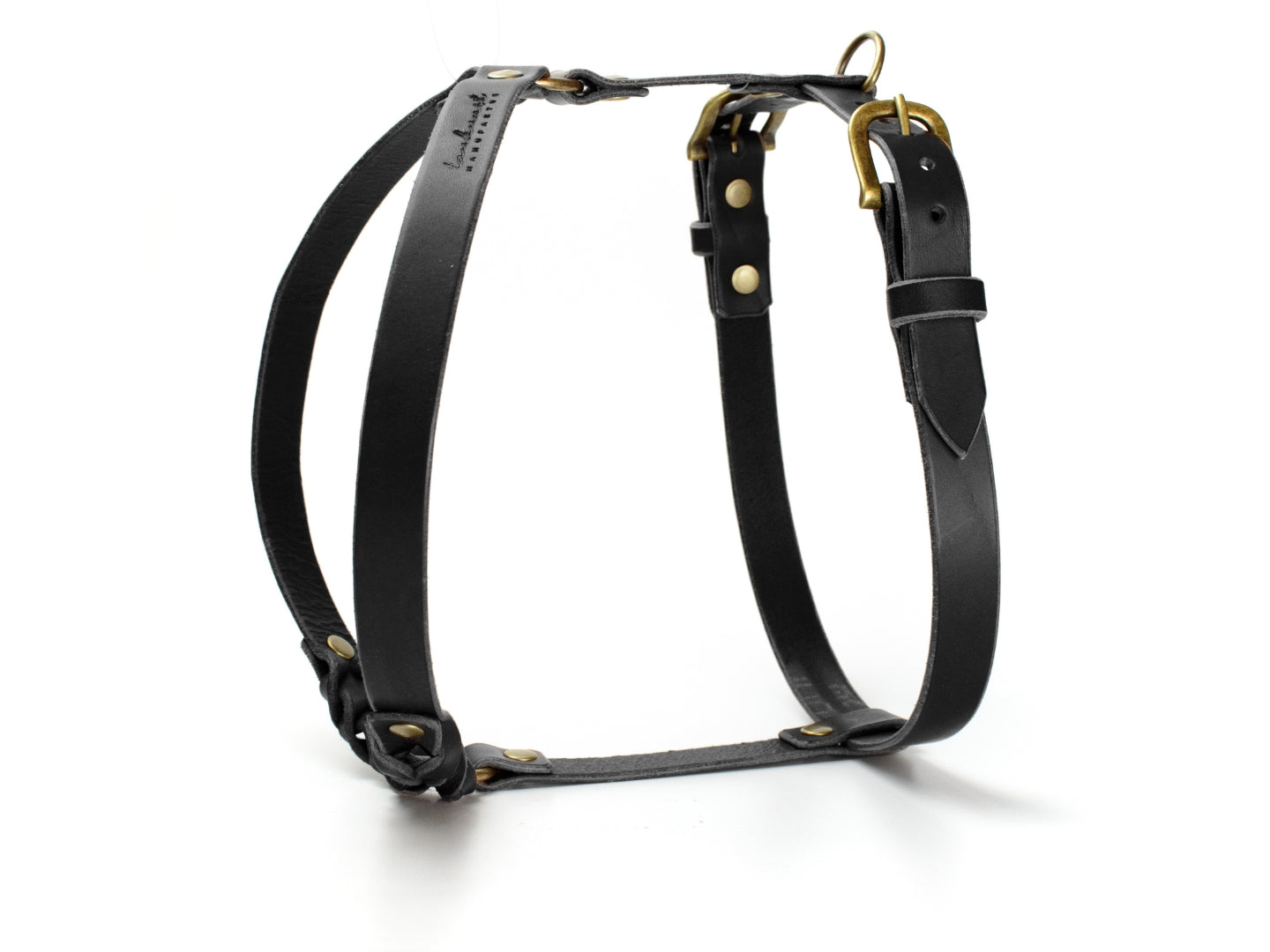 Das Ledergeschirr in der Farbe Schwarz aus der ‚Waldstreuner‘ Kollektion wird in unserer Münchner Manufaktur in traditioneller Handarbeit für deinen Hund maßgefertigt.