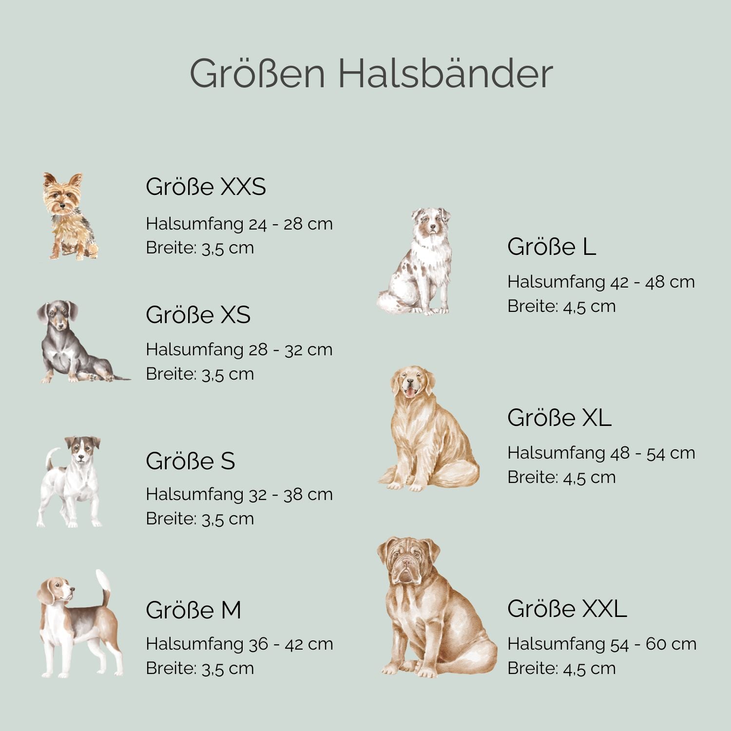 Die Größenangaben beziehen sich auf den anliegend gemessenen Halsumfang deines Hundes.
