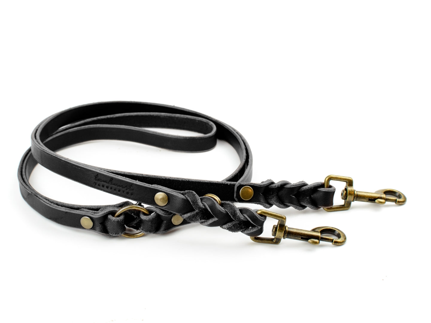 Die Lederleine in der Farbe Schwarz aus der ‚Waldstreuner‘ Kollektion wird in unserer Münchner Manufaktur in traditioneller Handarbeit gefertigt.