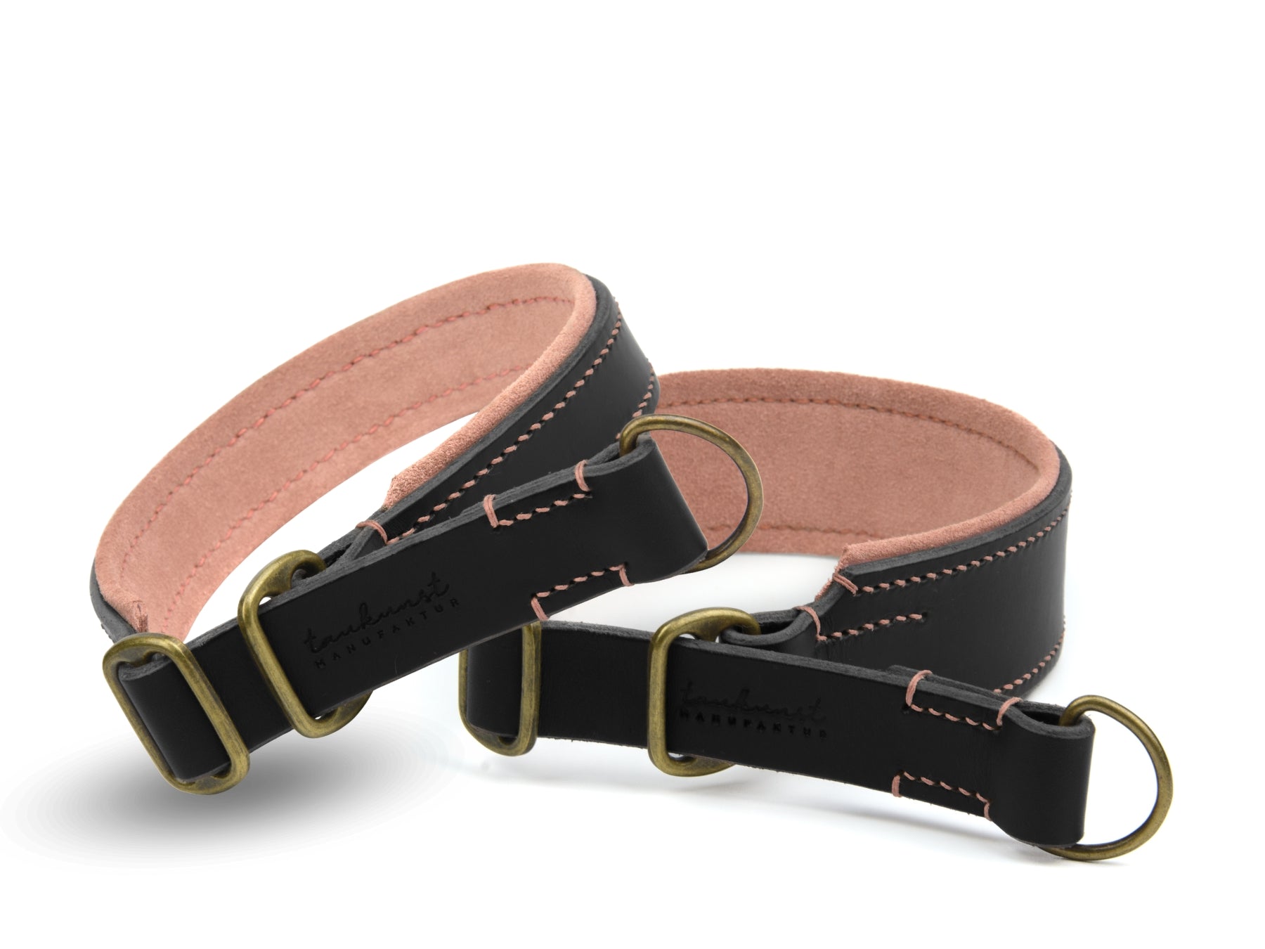 Das gepolsterte Zugstopp Lederhalsband in der Farbe Schwarz aus der ‚Wildfang‘ Kollektion wird in unserer Münchner Manufaktur in traditioneller Handarbeit gefertigt.